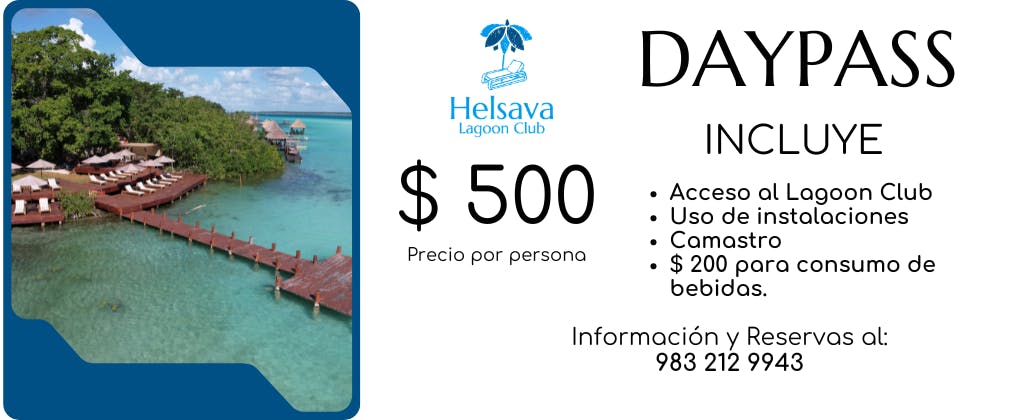 Escape to the tranquil beauty of Bacalar Lagoon with a relaxing day at Helsava Lagoon Club by Cabañas Luxury, located just a short 150-meter walk from the hotel, right in front of the lagoon. Surrounded by breathtaking views and a serene atmosphere, it’s the perfect setting to unwind and enjoy the Caribbean sunshine.